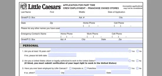 Little Caesars Application Form printable pdf download from www.formsbank.com