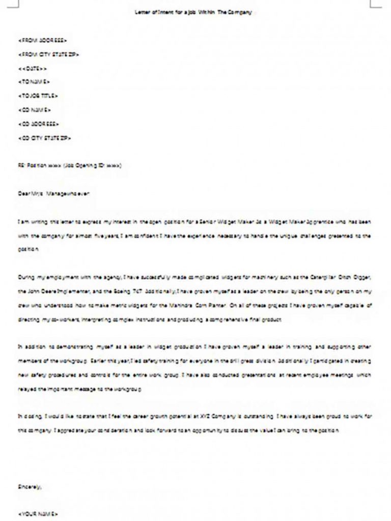 Letter of intent for a job within the same company example letter letter of. It is frequent that a letter of intent. Regardless of the reason, the intent on the cover letter must be presented in a very professional.